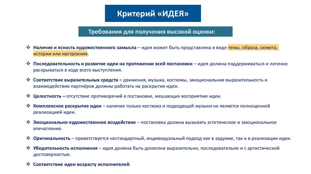 Критерий «ИДЕЯ»Требования для получения высокой оценки: