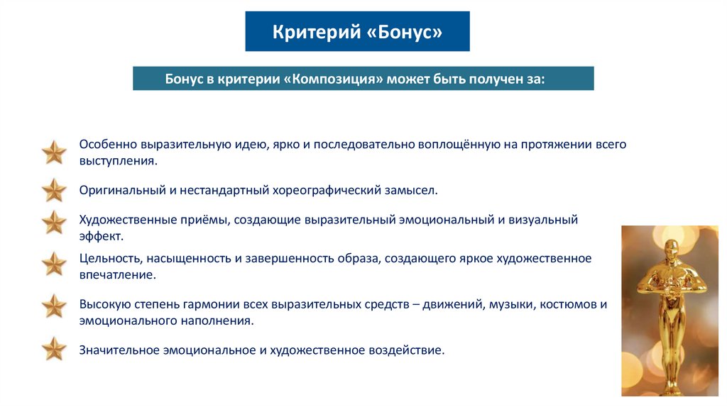 Критерий «Бонус»Бонус в критерии «Композиция» может быть получен за: