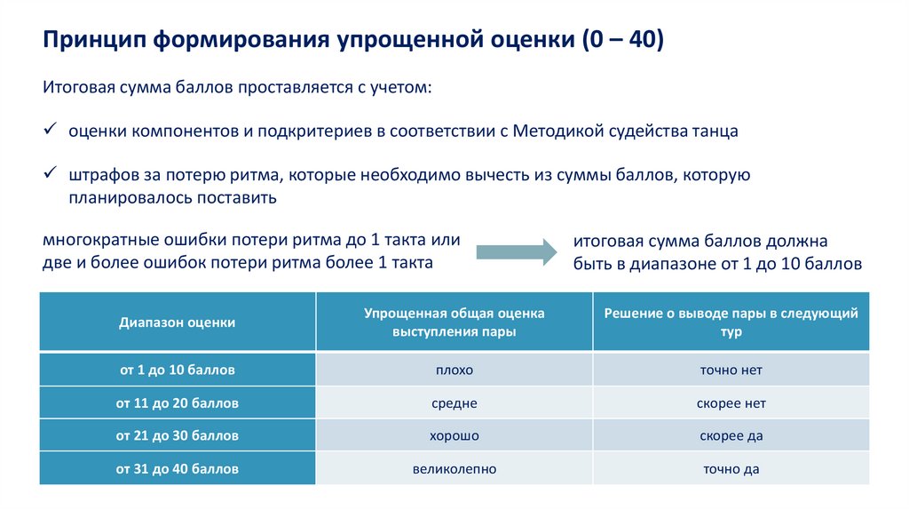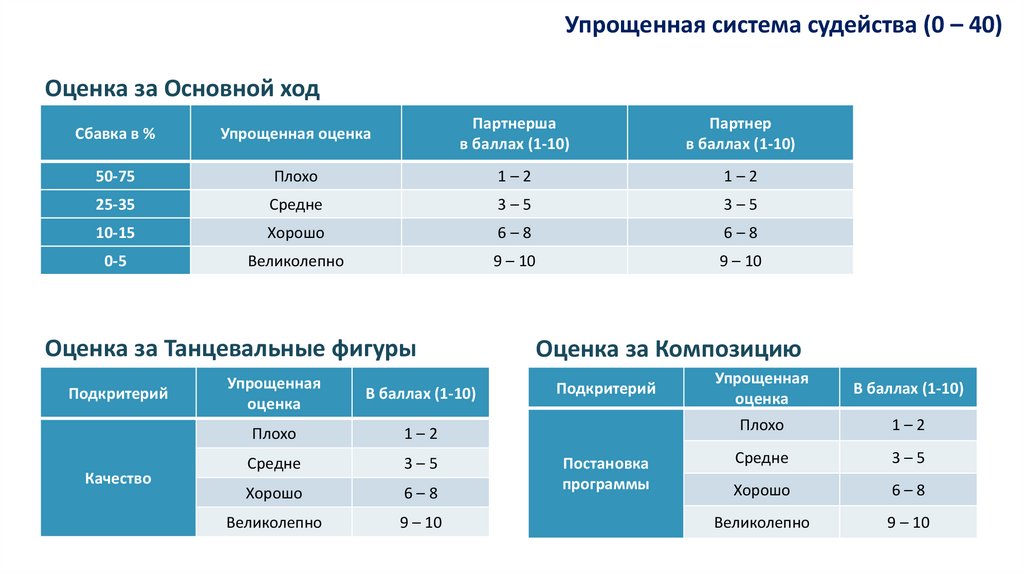 Упрощенная система судейства (0 – 40)Оценка за Основной ход