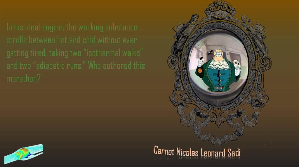 In his ideal engine, the working substancestrolls between hot and cold without ever