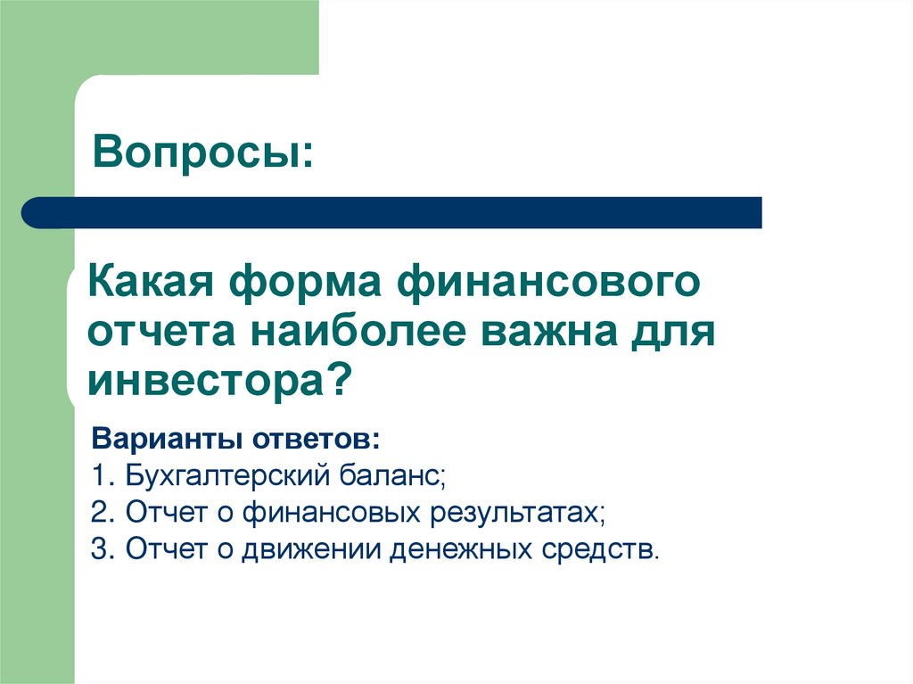 1. Какая форма финансового отчета наиболее важна для инвестора?