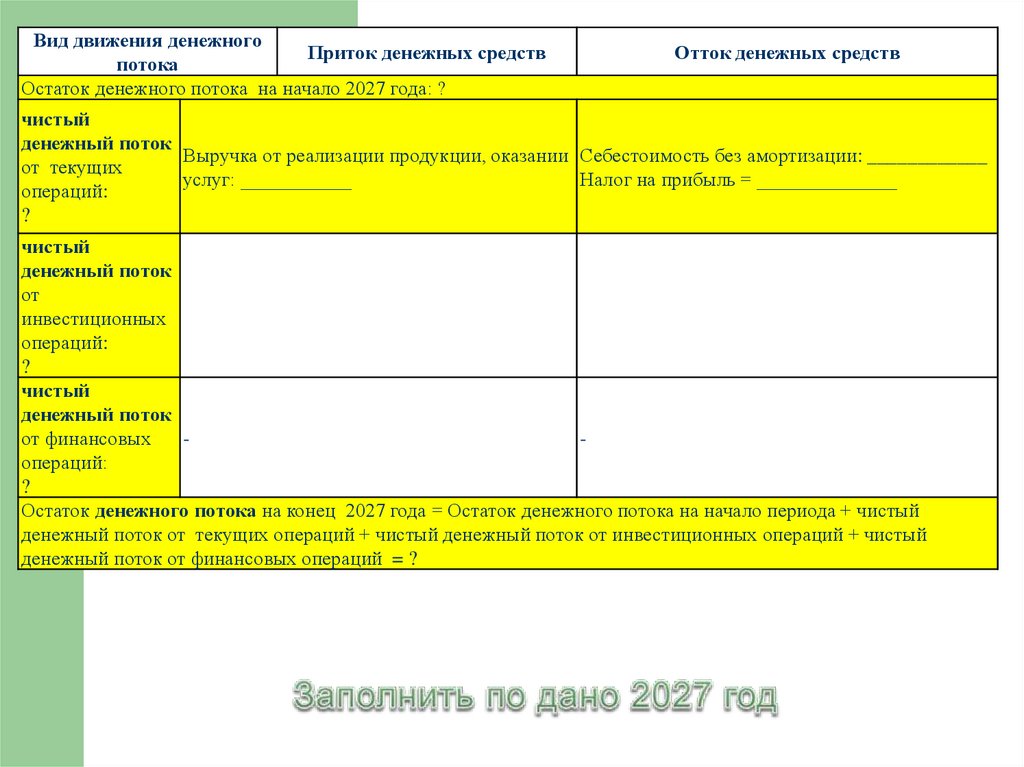 Остаток денежного потока на начало 2027 года: ?