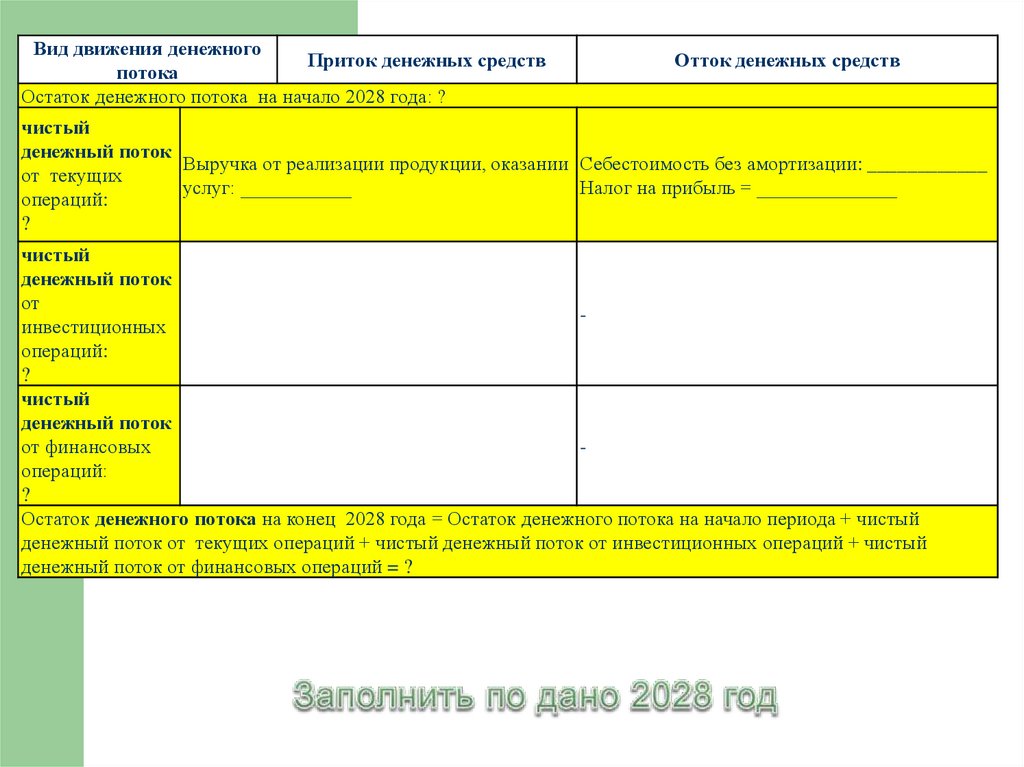 Остаток денежного потока на начало 2028 года: ?