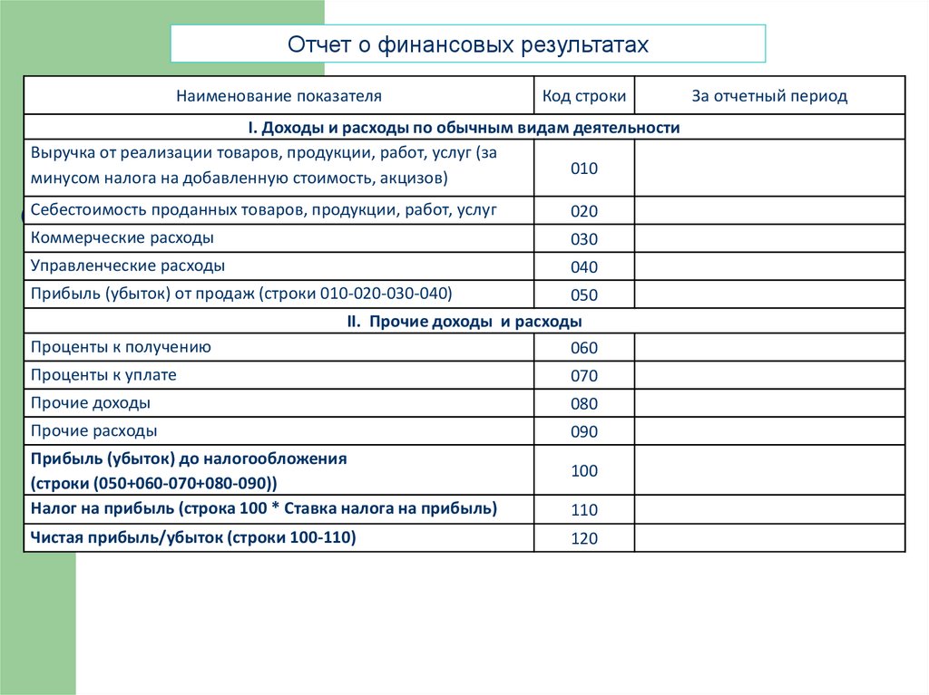 Отчет о финансовых результатахНаименование показателя