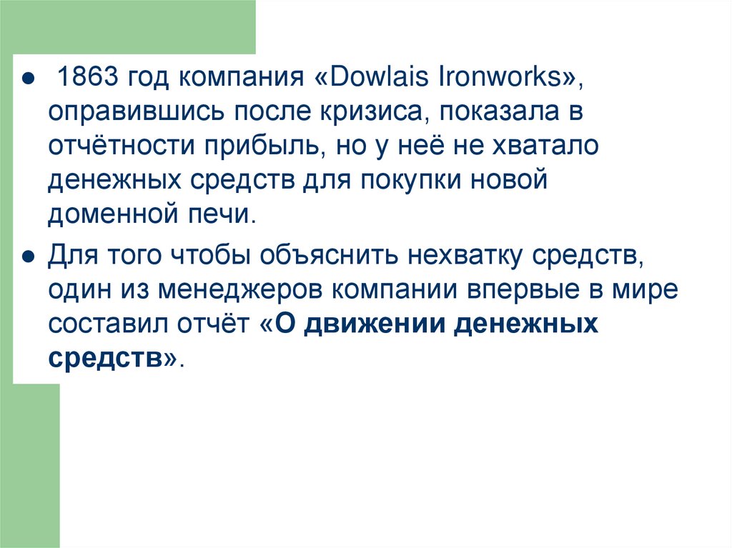 • Что означает термин «Сash flow» ?7.