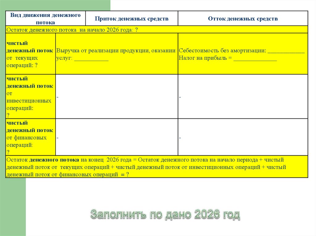 Остаток денежного потока на начало 2026 года: ?