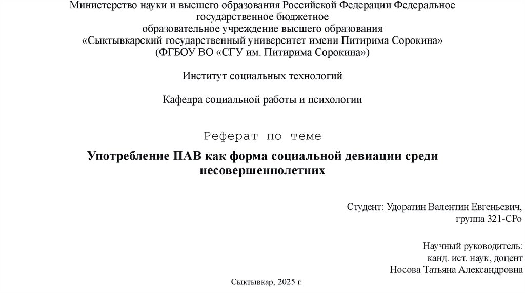 высшего образования«Сыктывкарский государственный университет имени Питирима Сорокина»