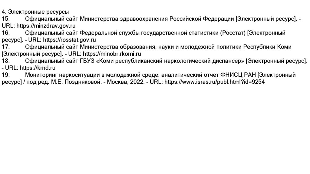 Колесов, Д.В. Наркомания: сущность, механизмы, профилактика: монография / Д.В. Колесов. – Москва: МПСИ; Воронеж: МОДЭК,