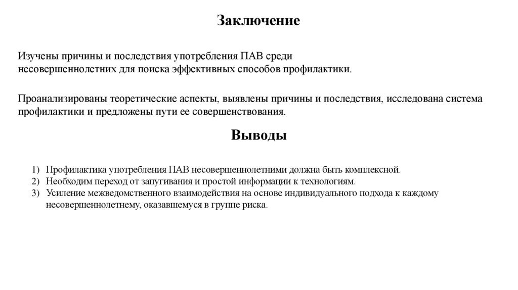 ЗаключениеИзучены причины и последствия употребления ПАВ среди