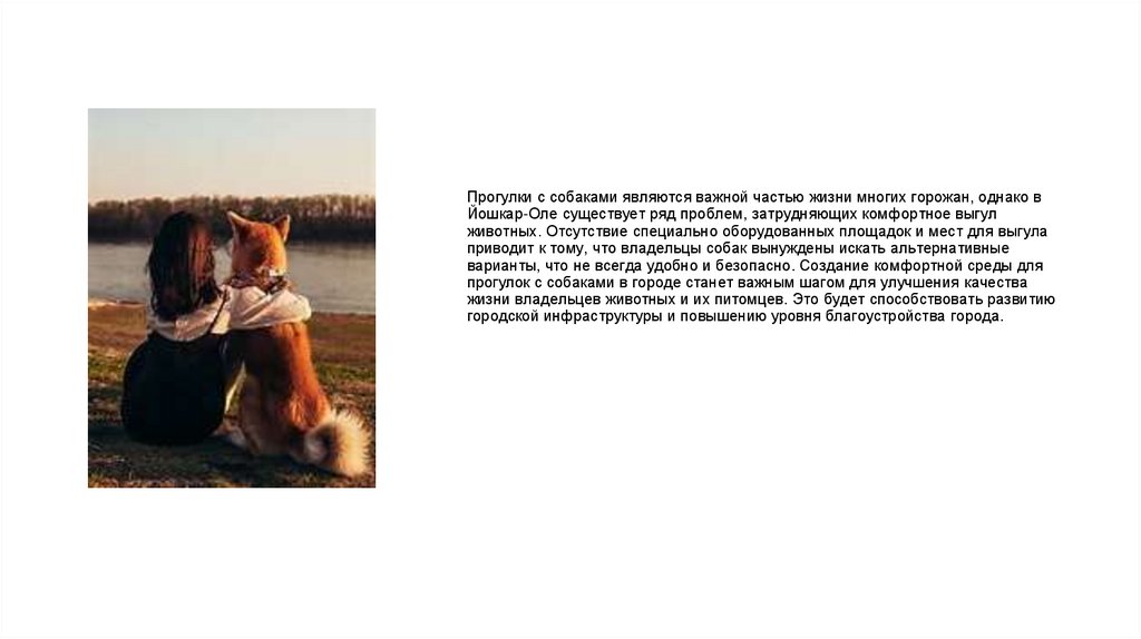 для отдыха, что создаёт приятную атмосферу для прогулок. Всё это способствует укреплению связи между человеком и его питомцем, а