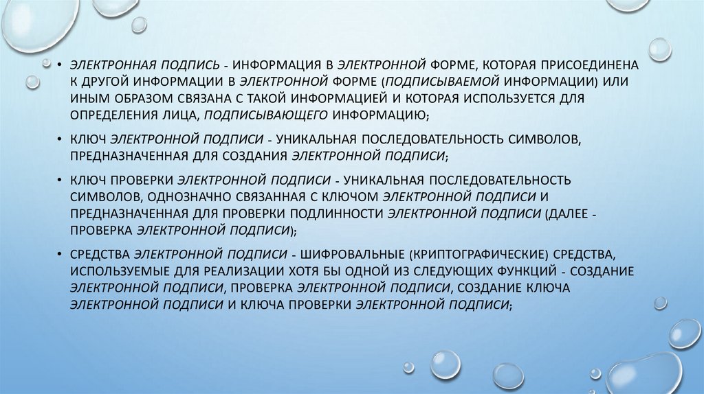 • КЛЮЧ ЭЛЕКТРОННОЙ ПОДПИСИ - УНИКАЛЬНАЯ ПОСЛЕДОВАТЕЛЬНОСТЬ СИМВОЛОВ,