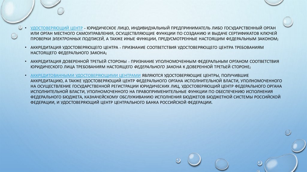 • АККРЕДИТОВАННЫМИ УДОСТОВЕРЯЮЩИМИ ЦЕНТРАМИ ЯВЛЯЮТСЯ УДОСТОВЕРЯЮЩИЕ ЦЕНТРЫ, ПОЛУЧИВШИЕ