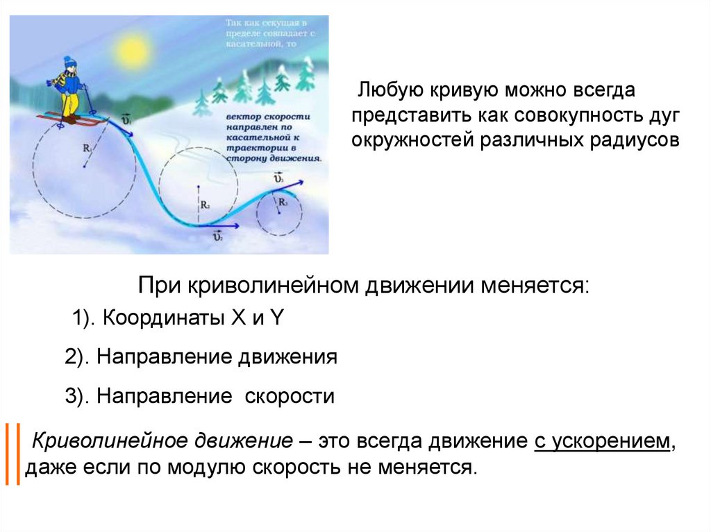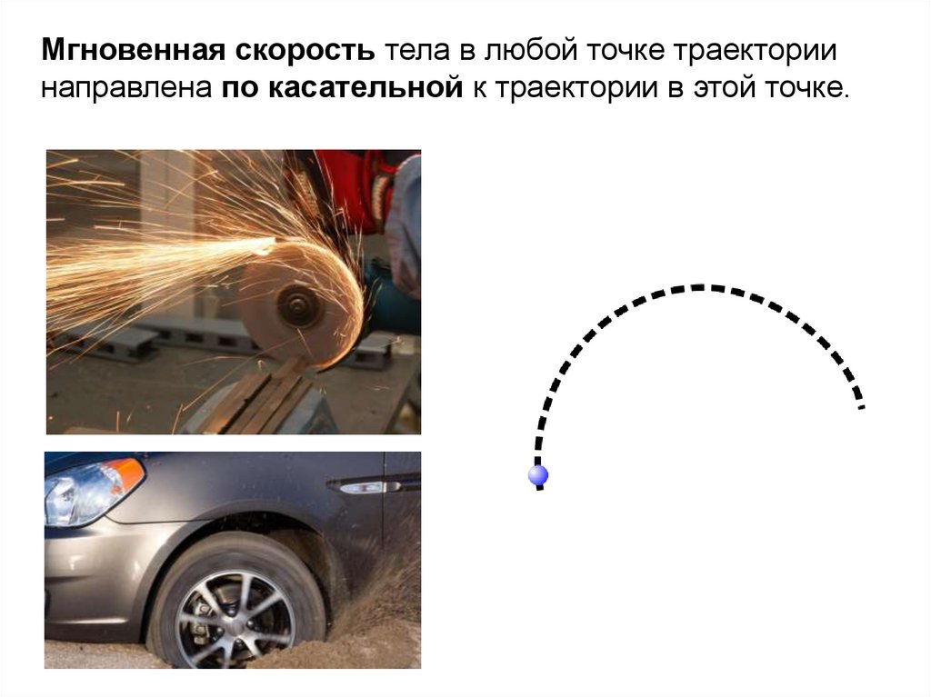Мгновенная скорость тела в любой точке траекториинаправлена по касательной к траектории в этой точке.