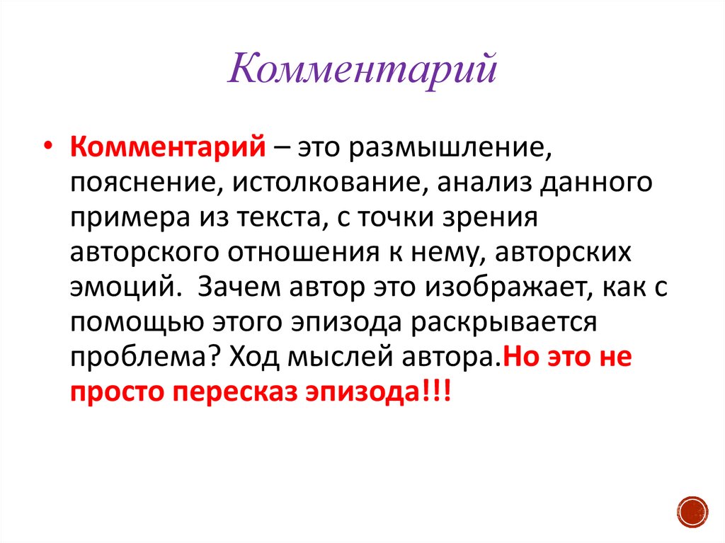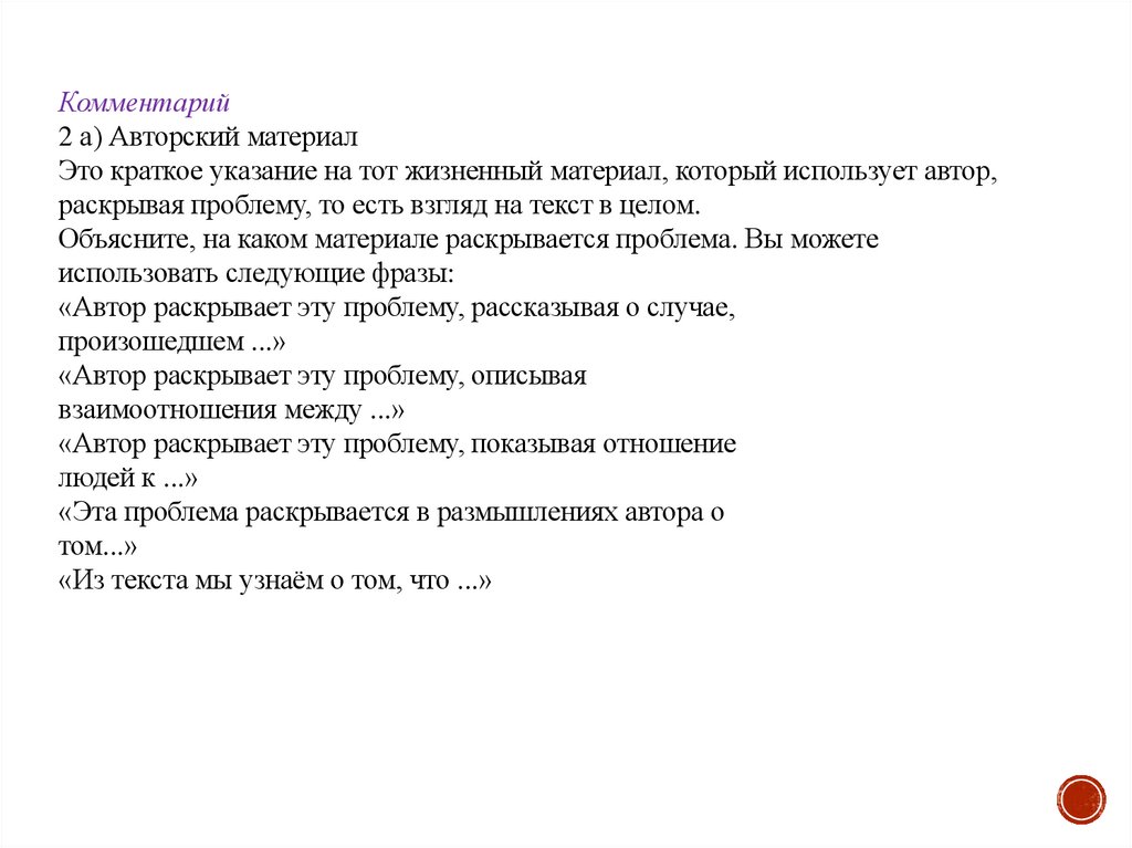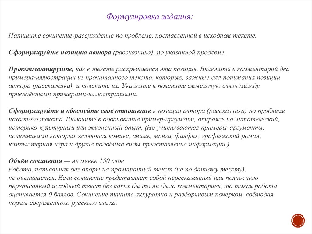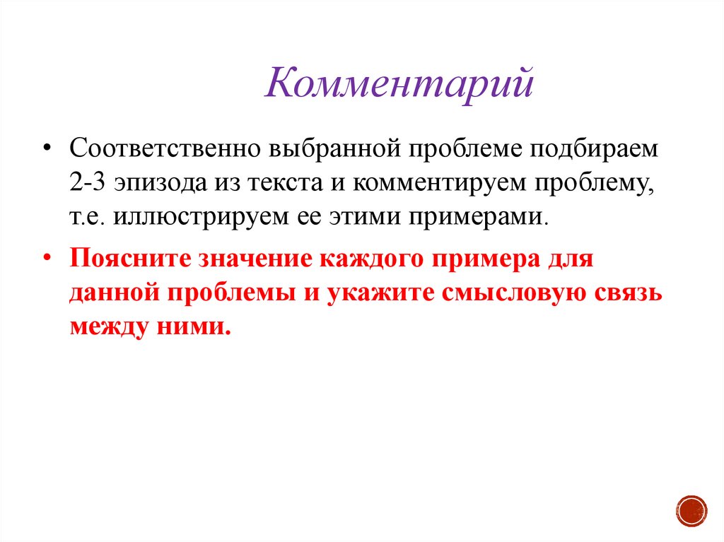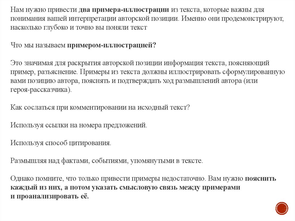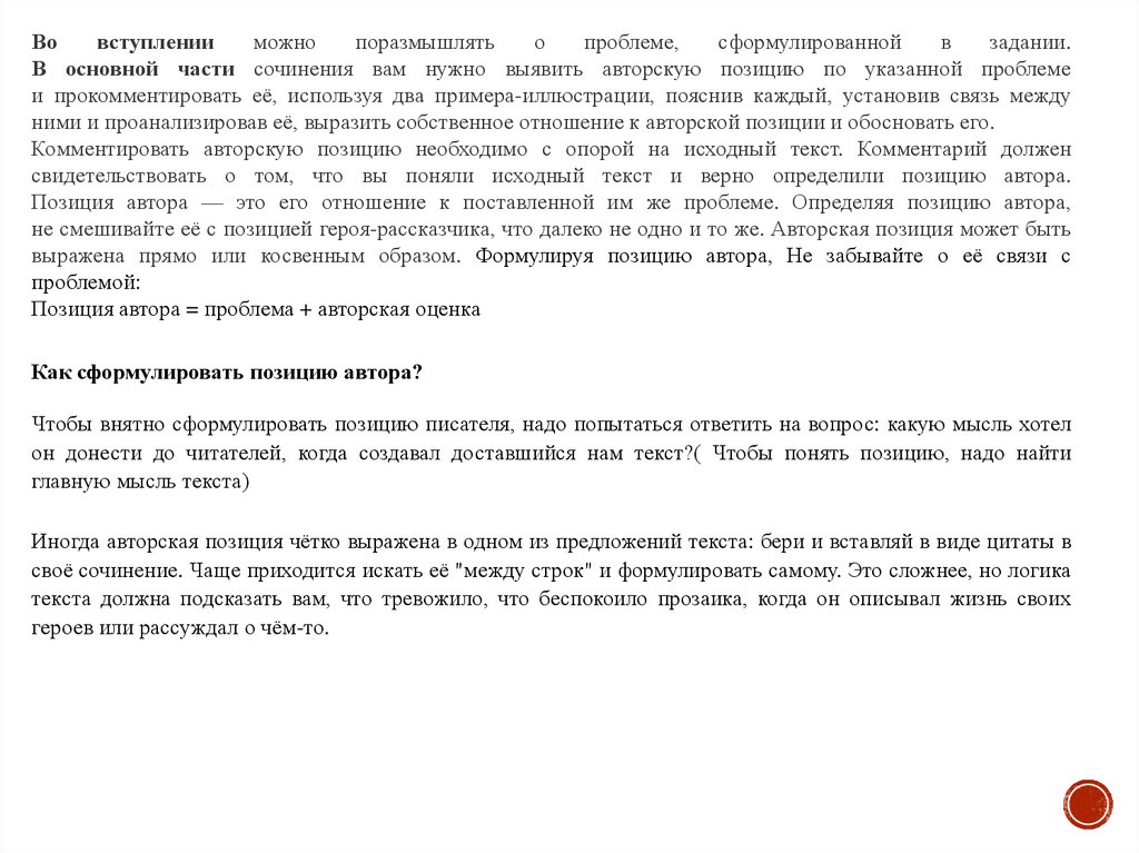 Комментировать авторскую позицию необходимо с опорой на исходный текст. Комментарий должен