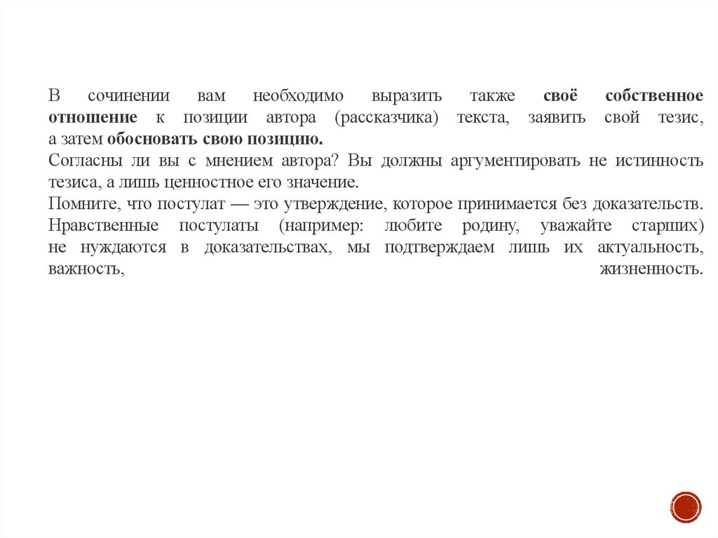 • Нужно выразить свою позицию. Позиция – это