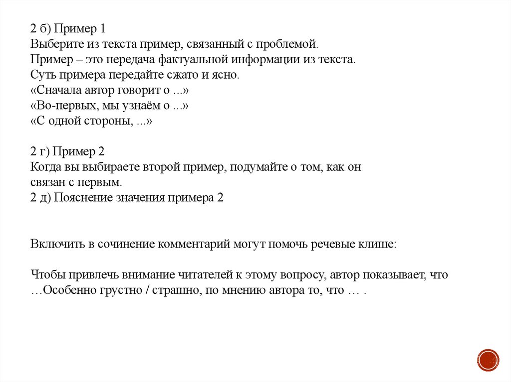 2. Комментарий к позиции автора, который включает в себя следующие элементы: