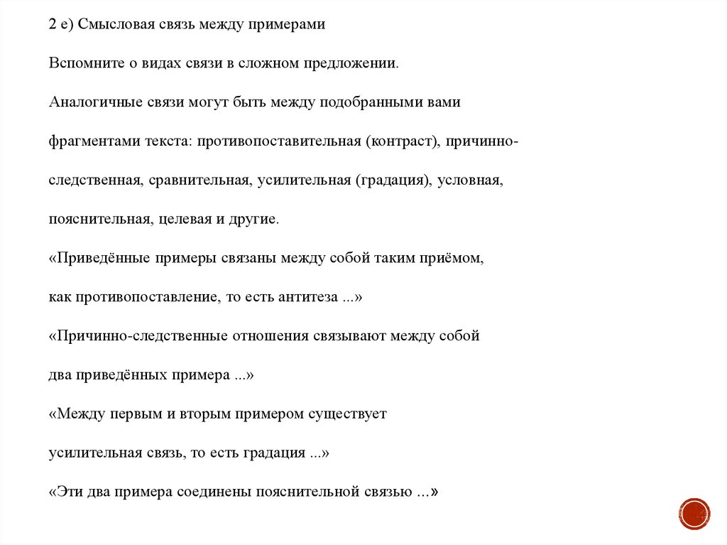 2 е) Смысловая связь между примерамиВспомните о видах связи в сложном предложении.