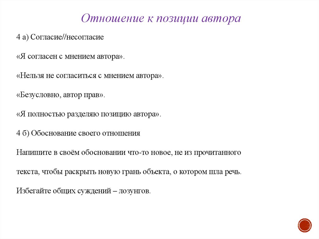 Отношение к позиции автора4 а) Согласие//несогласие