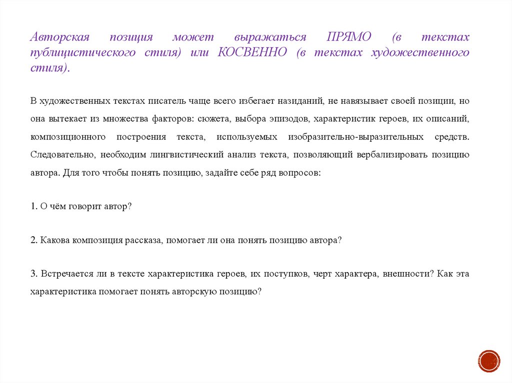 выражена прямо или косвенным образом. Формулируя позицию автора, Не забывайте о её связи с