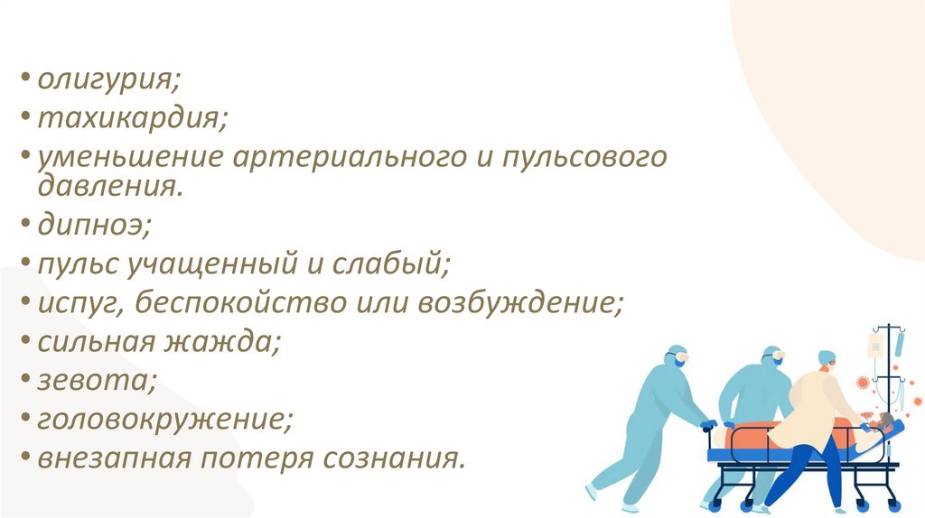 • олигурия;• тахикардия;