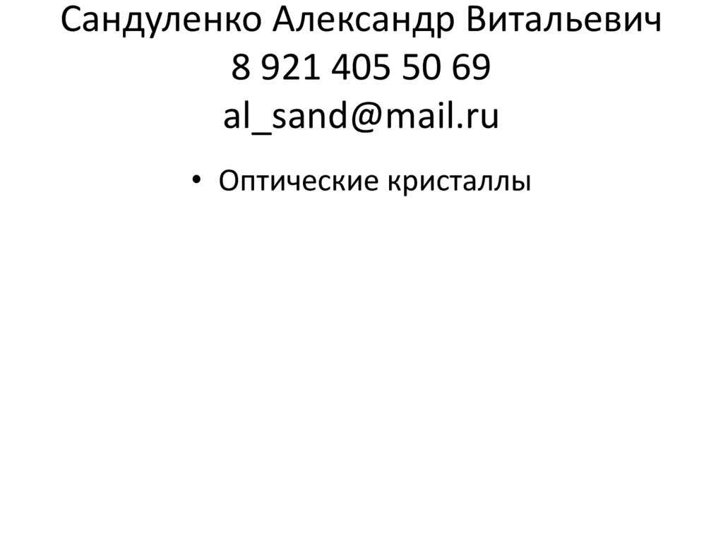 1. Сандуленко Александр Витальевич 8 921 405 50 69 al_sand@mail.ru