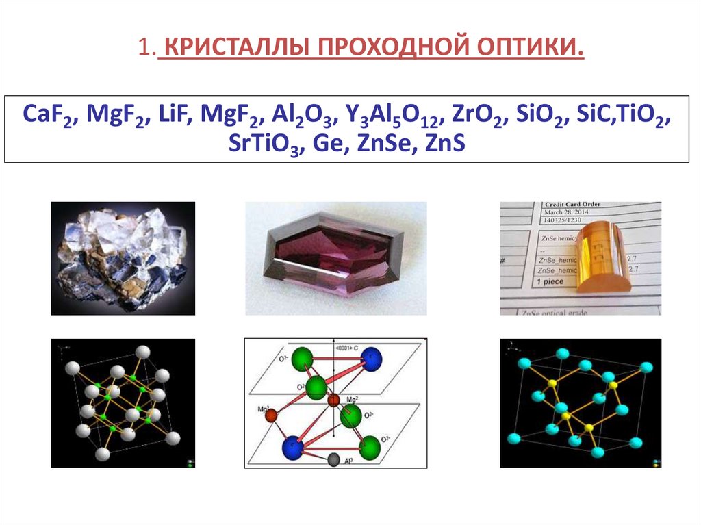 1. КРИСТАЛЛЫ ПРОХОДНОЙ ОПТИКИ.CaF2, MgF2, LiF, MgF2, Al2O3, Y3Al5O12, ZrO2, SiO2, SiC,TiO2,