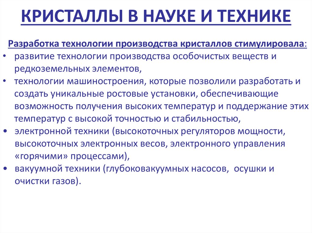 КРИСТАЛЛЫ В НАУКЕ И ТЕХНИКЕРазработка технологии производства кристаллов стимулировала: