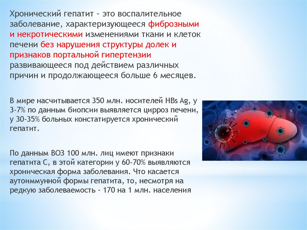 Хронический гепатит – это воспалительноезаболевание, характеризующееся фиброзными