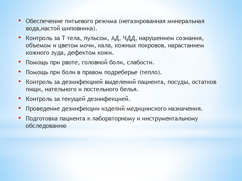 • Контроль за дезинфекцией выделений пациента, посуды, остатков
