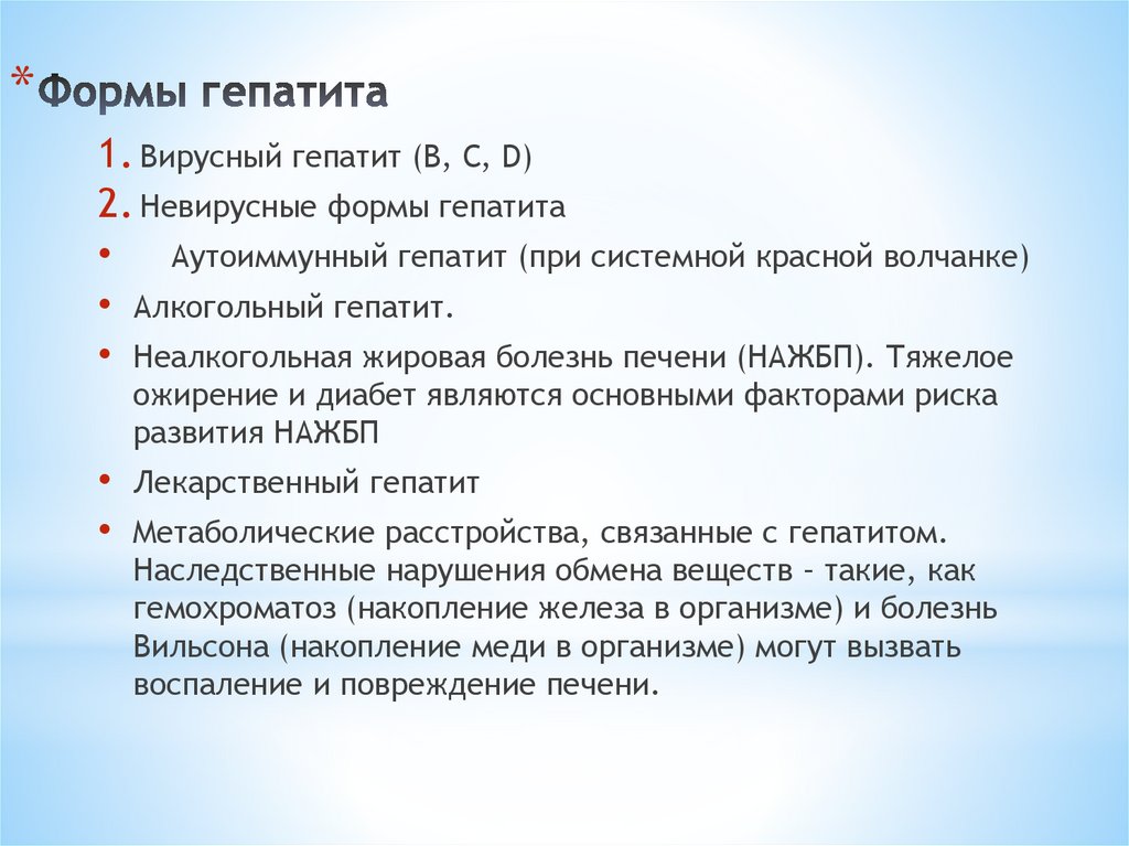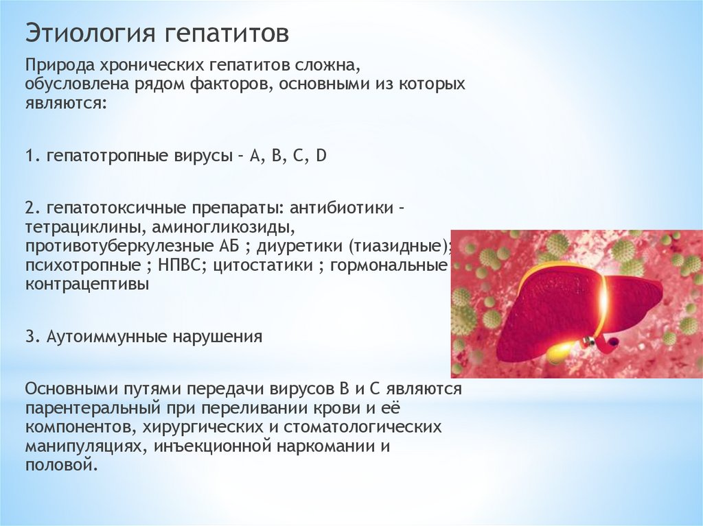 Этиология гепатитовПрирода хронических гепатитов сложна,