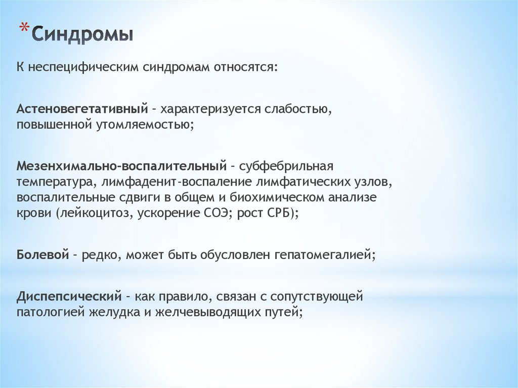 Болевой – редко, может быть обусловлен гепатомегалией;