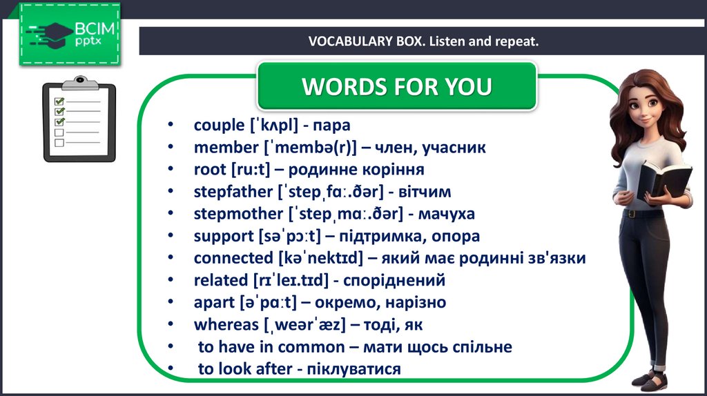 VOCABULARY BOX. Listen and repeat.WORDS FOR YOU