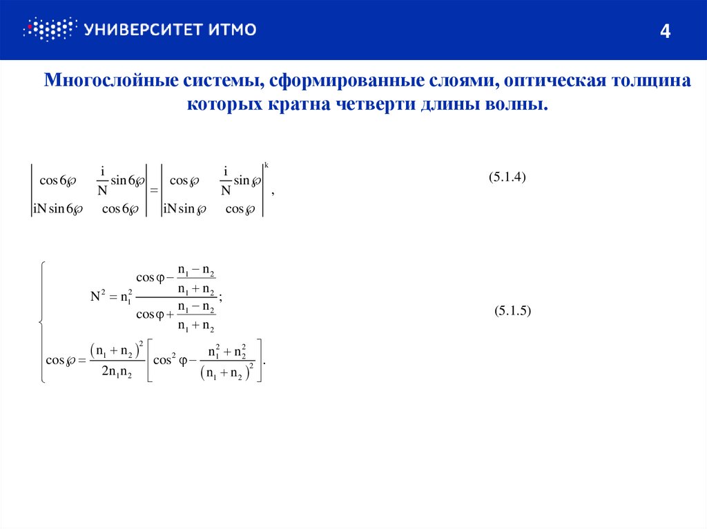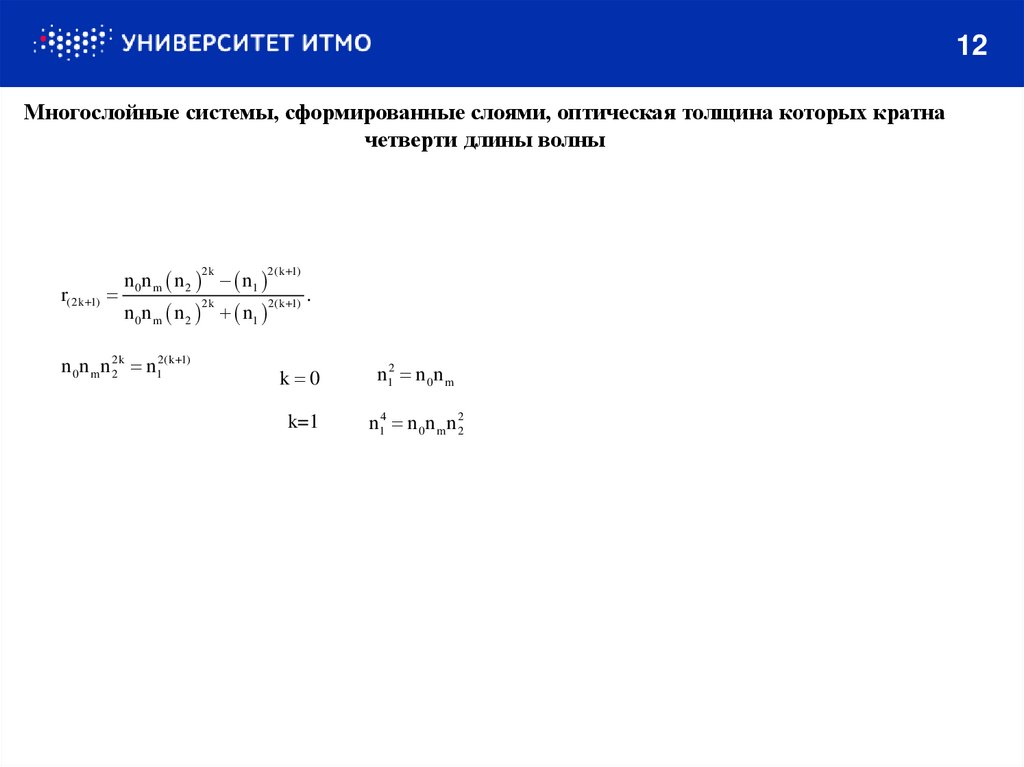 7Многослойные системы, сформированные слоями, оптическая толщина