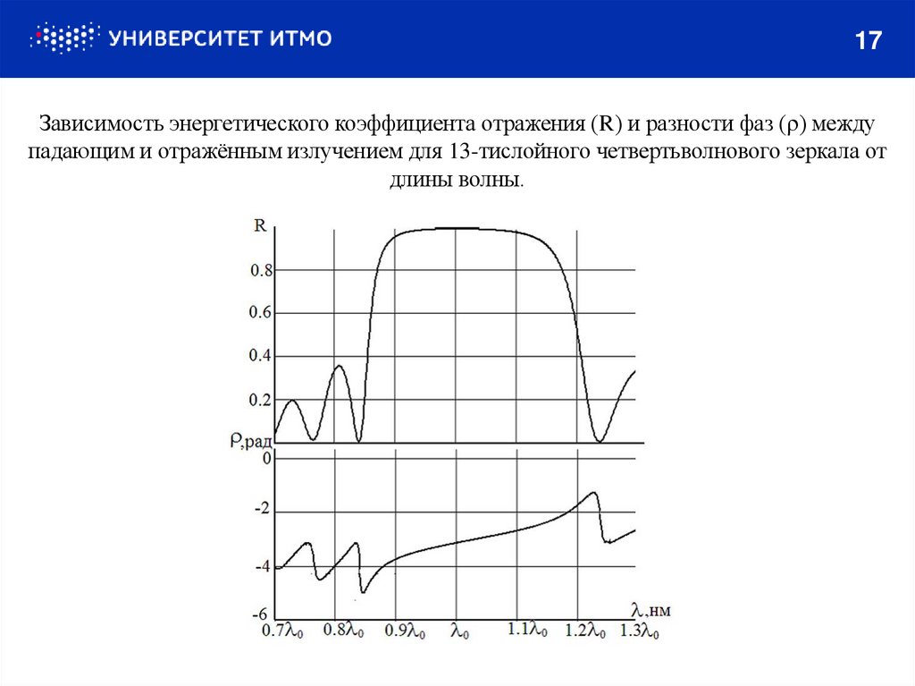 составляет 100нм с нанесенными на него четвертьволновыми слоями оксида кремния и циркония 0=600нм,.