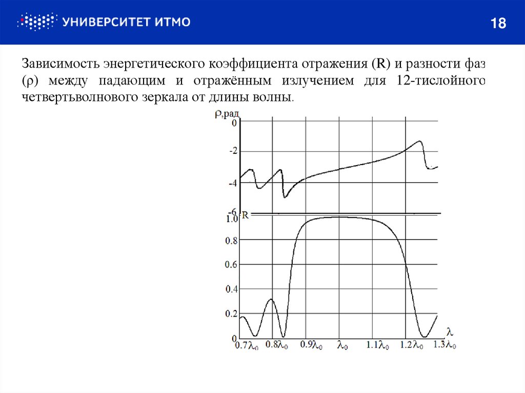 18Зависимость энергетического коэффициента отражения (R) и разности фаз