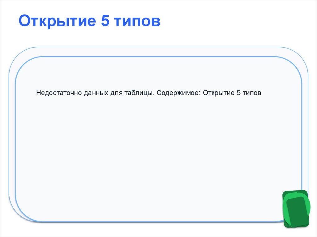 Открытие 5 типовНедостаточно данных для таблицы. Содержимое: Открытие 5 типов