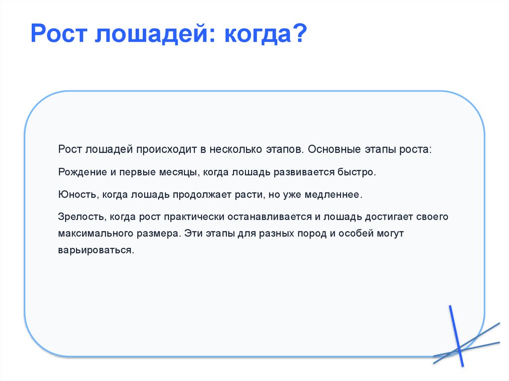 Рост лошадей: когда?Рост лошадей происходит в несколько этапов. Основные этапы роста: