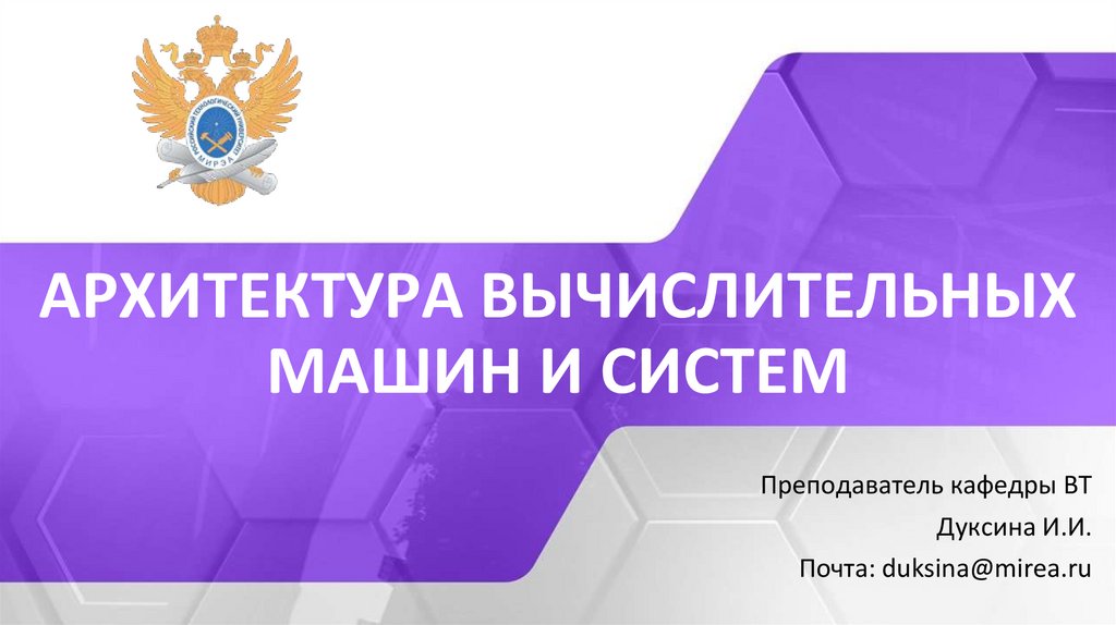 АРХИТЕКТУРА ВЫЧИСЛИТЕЛЬНЫХМАШИН И СИСТЕМ
