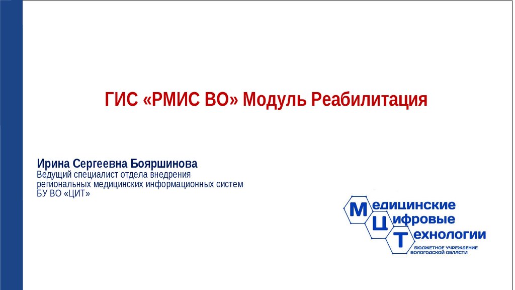 ГИС «РМИС ВО» Модуль РеабилитацияИрина Сергеевна Бояршинова
