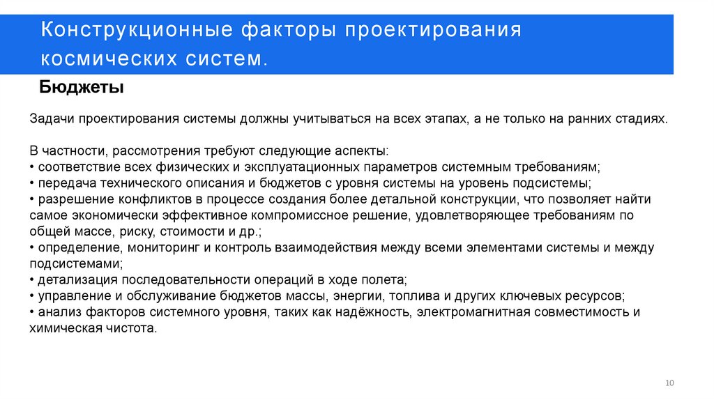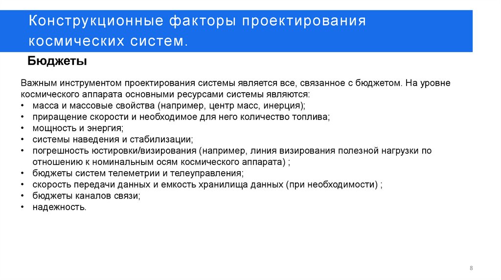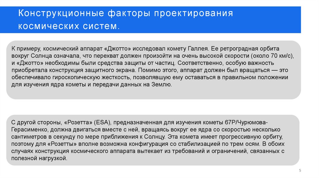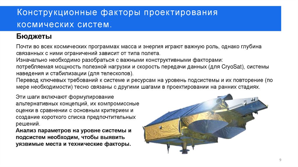 случаях конструкция космического аппарата вытекает из требований и ограничений, связанных с