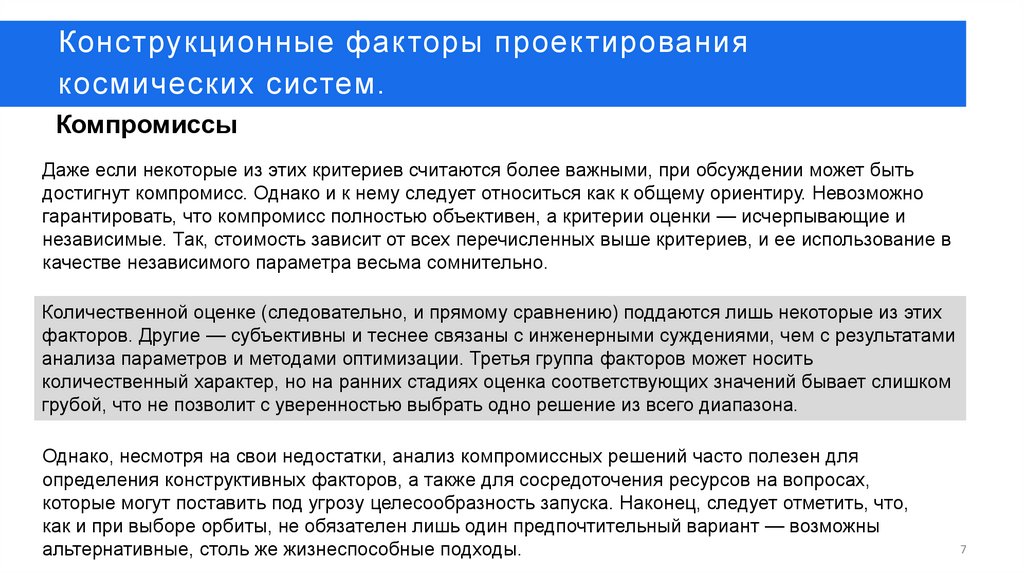 своевременного компромиссного решения. Конструкция последующих систем и подсистем