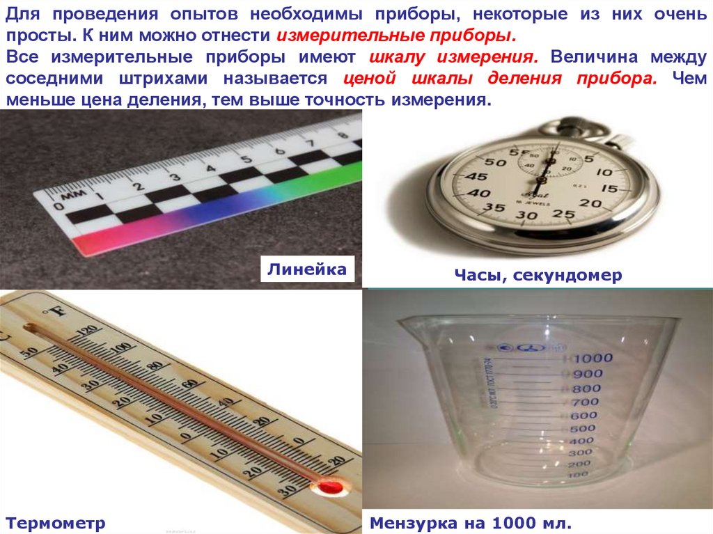 Для проведения опытов необходимы приборы, некоторые из них оченьпросты. К ним можно отнести измерительные приборы.