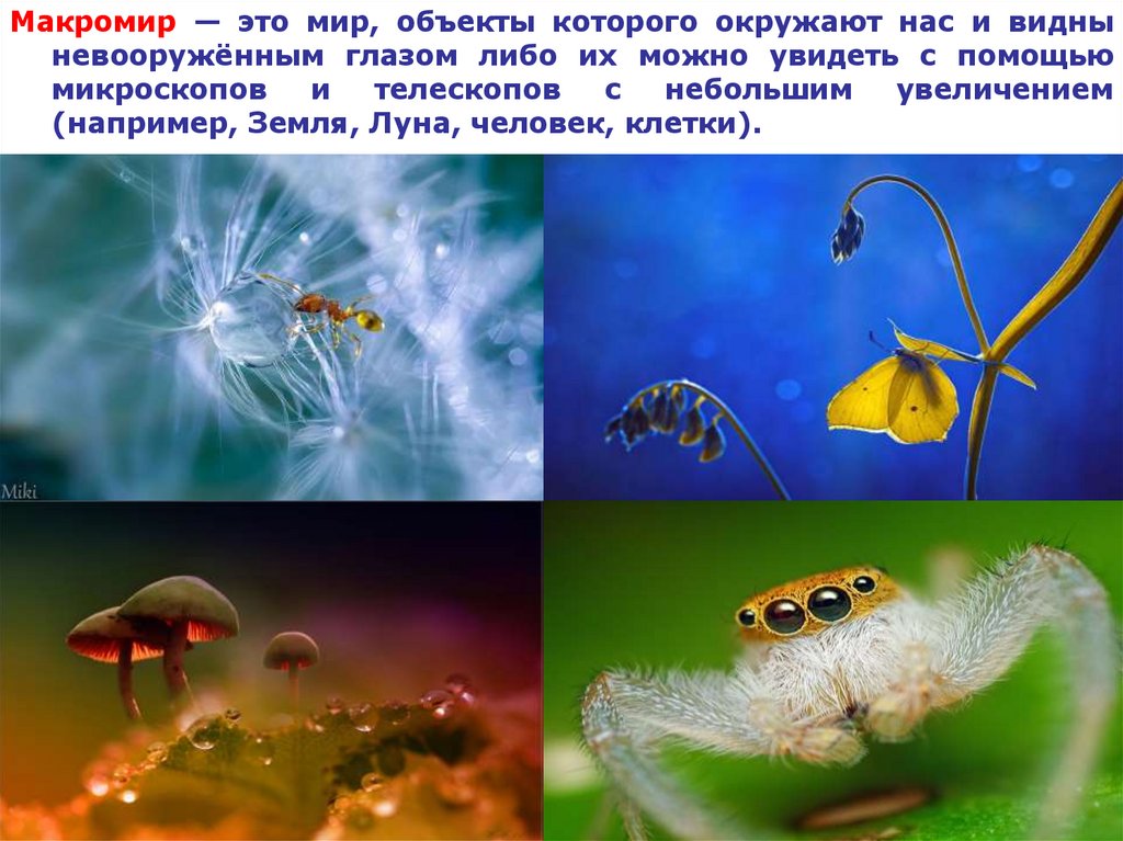 Макромир — это мир, объекты которого окружают нас и видныневооружённым глазом либо их можно увидеть с помощью