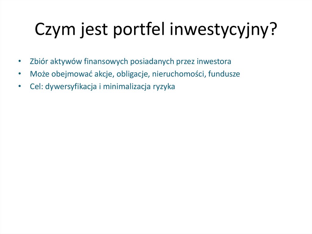 Czym jest portfel inwestycyjny?• Zbiór aktywów finansowych posiadanych przez inwestora