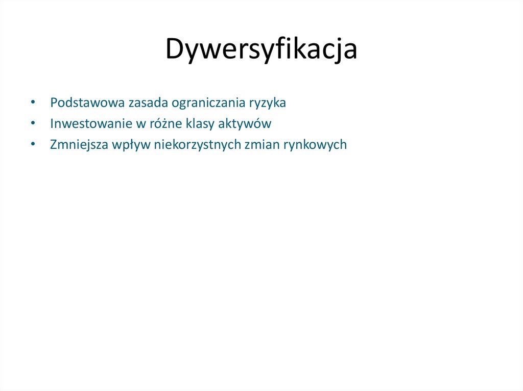 Dywersyfikacja• Podstawowa zasada ograniczania ryzyka