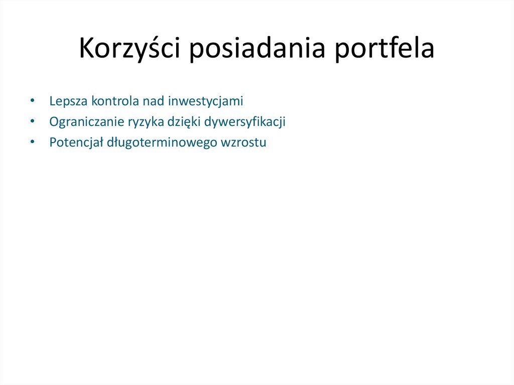 Korzyści posiadania portfela• Lepsza kontrola nad inwestycjami