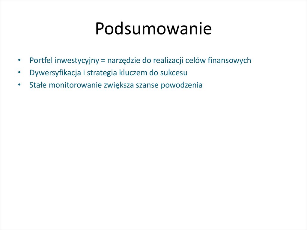 Podsumowanie• Portfel inwestycyjny = narzędzie do realizacji celów finansowych