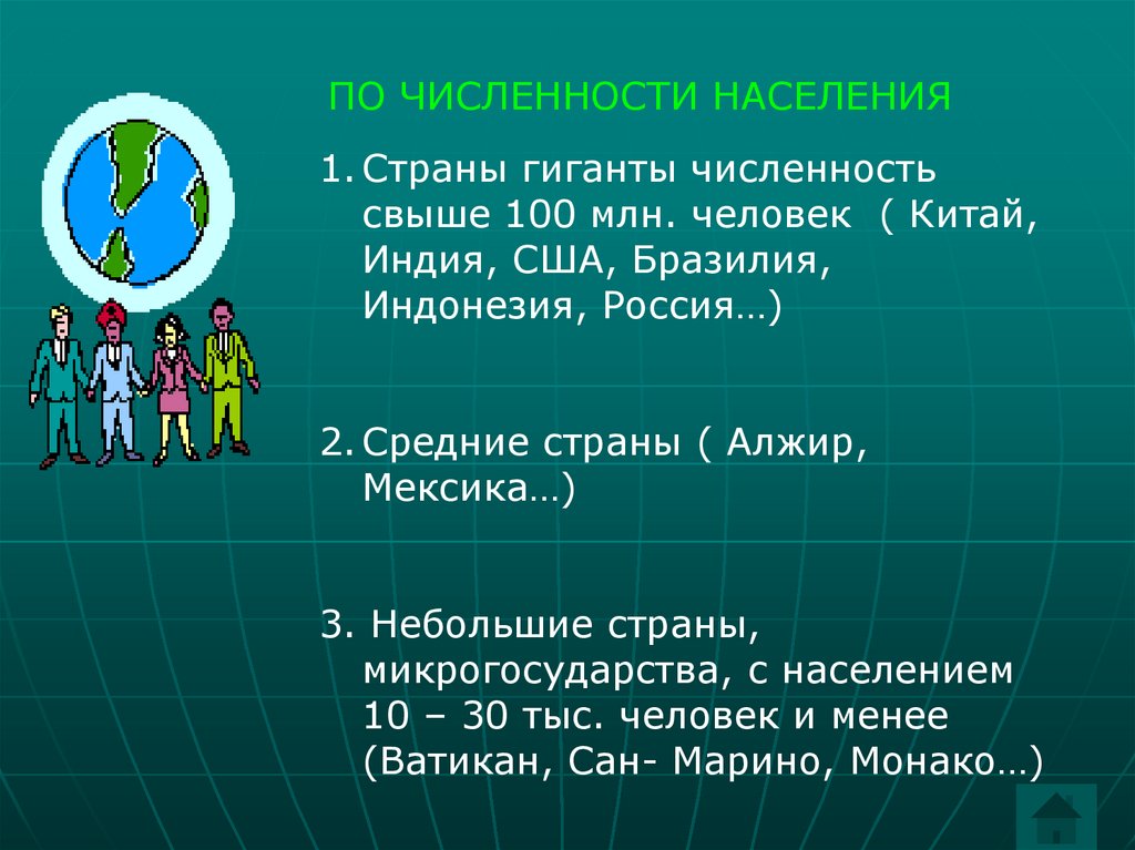ПО ЧИСЛЕННОСТИ НАСЕЛЕНИЯ1. Страны гиганты численность