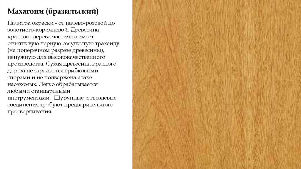 Махагони (бразильский)Палитра окраски - от палево-розовой до