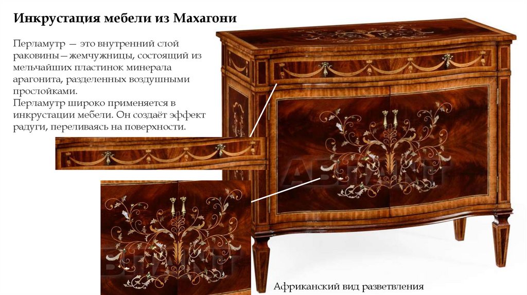 Инкрустация мебели из МахагониПерламутр — это внутренний слой